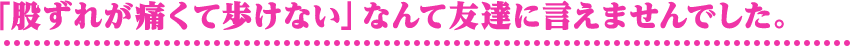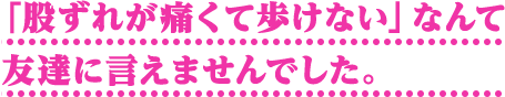 友達と遊びに行っても、すぐに股ずれになってしまって・・・痛くて歩くのも辛いのですが、「股ずれが痛くて歩けない」なんて、恥ずかしくて誰にも言えません。顔は笑っていましたが、当時は本当に、情けない気持ちでいっぱいでした。