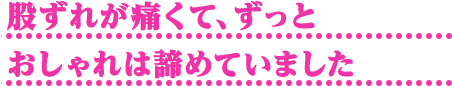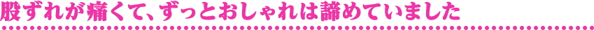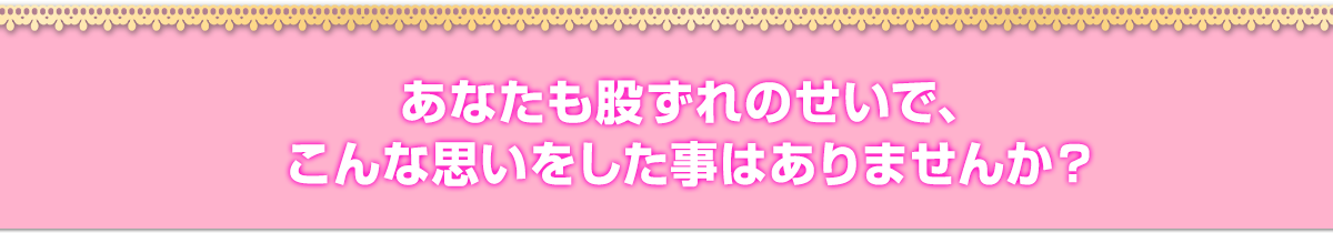 以前から股ずれの痛みに悩んでいました。スカートをはくと太ももの内側が擦れて、本当に痛いんです。特に、汗ばむ季節はひどくて。これは経験したことがある人にしかわからない辛さですね。