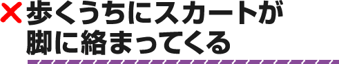 歩く間にスカートが股の間に巻きこまれて引っ張り出しながら歩かないといけないという悲劇が起こります。