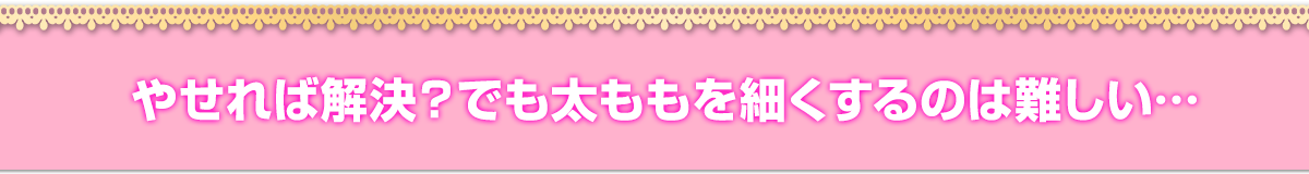 「だったらやせればいいのでは?」そう思うのも当然です。だけど、ダイエットの中で一番効果が出にくいのが脚やせなのです。あなたも、ダイエットをして体重は減ったけど、太ももがまったく細くならなかった、なんてことはありませんか?