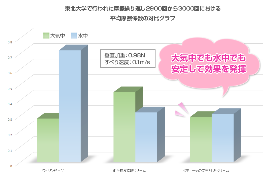 他社皮膚保護クリームと、ワセリン相当品との摩擦低減効果の違いに関するデータ結果