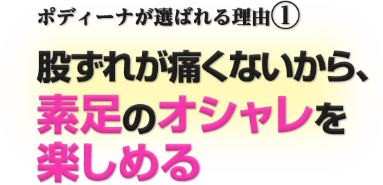 デートで可愛い靴を履きたくても靴ずれを起こしてしまっては台無しですよね。ポディーナを使えば、そんな靴擦れともさよなら出来ます。 - 股ずれによる黒ずみのケアに