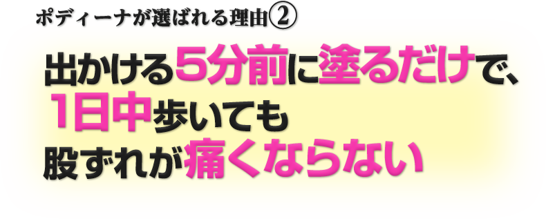 ポディーナはお出かけの5分前にひと塗りするだけで、痛い股ずれをケアします。